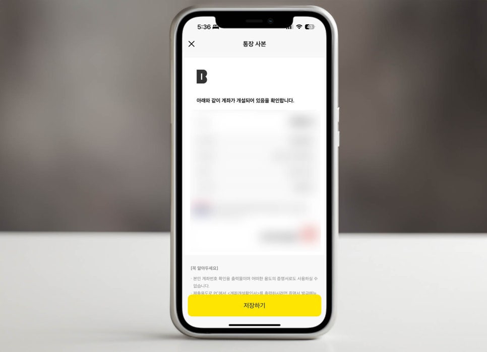 참고로 해당 모바일 환경에서 발급을 받은 통장사본은