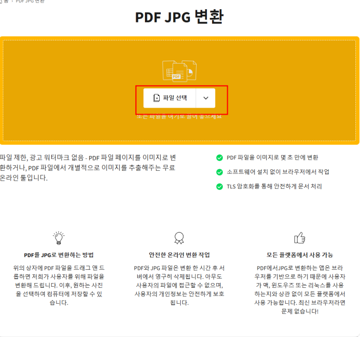 "JPG PDF 변환" 메뉴를 클릭합니다.