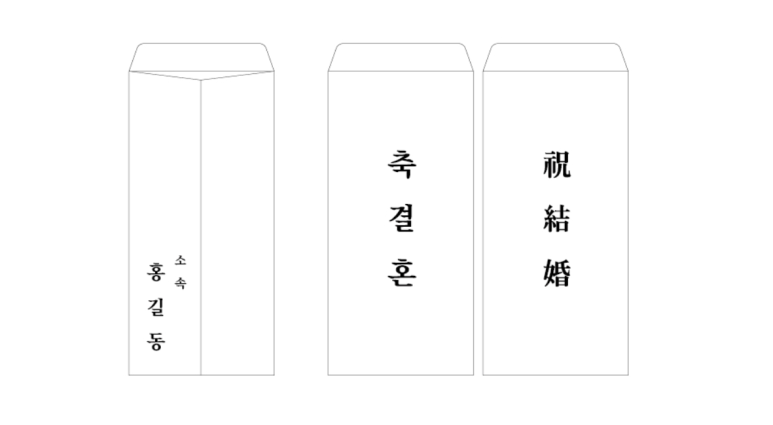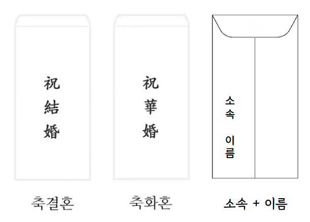 ✔ 봉투 앞면에는 "축 결혼" 또는 "축 성혼"을 적는다.