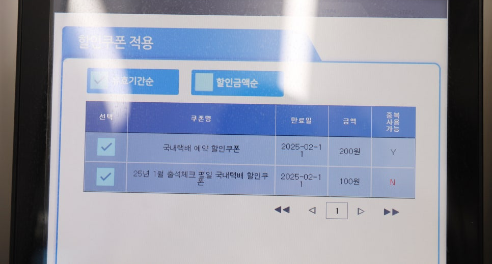 할인쿠폰은사용하고싶은쿠폰을체크하면된답니다.