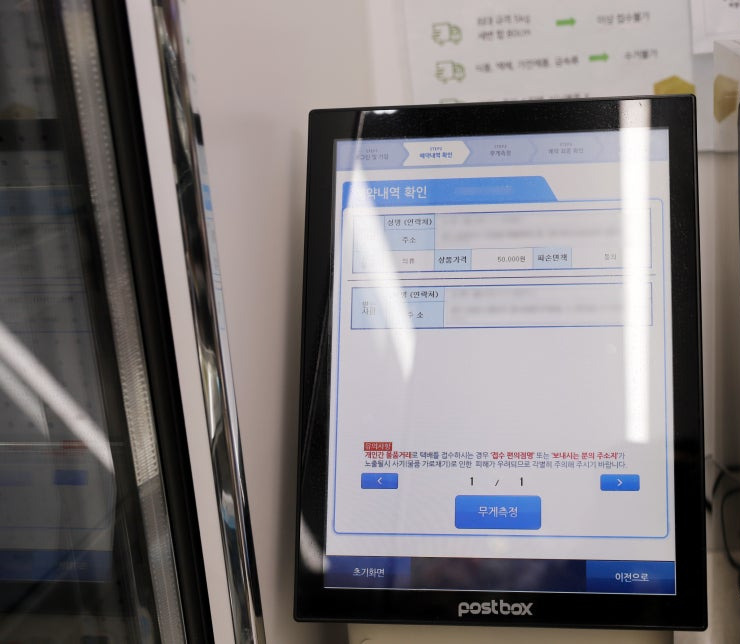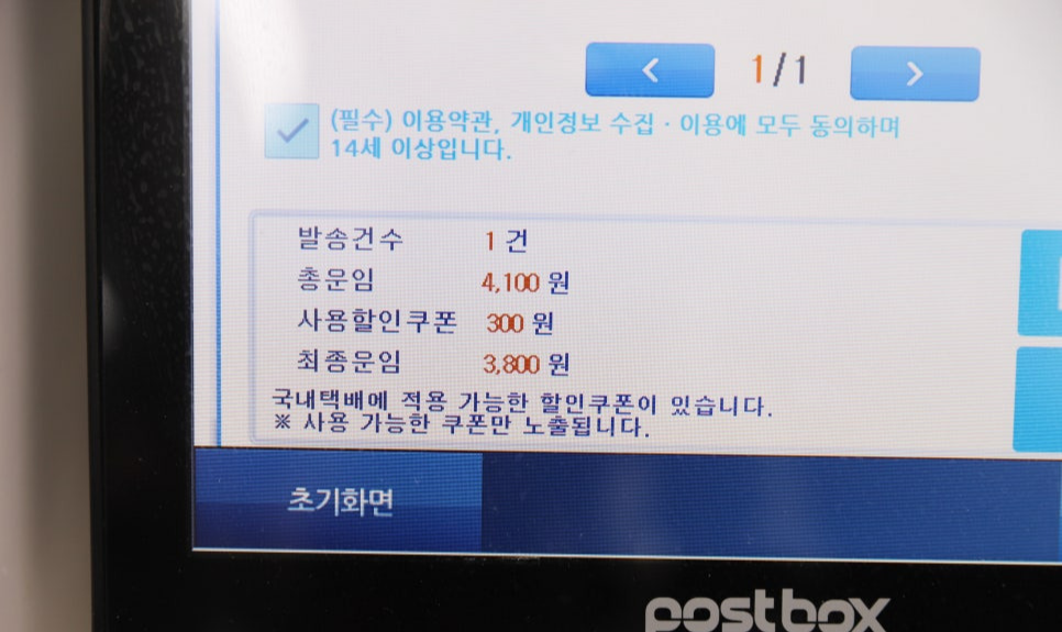 무게 측정 후 요금이 나오고 할인 쿠폰까지 적용해서