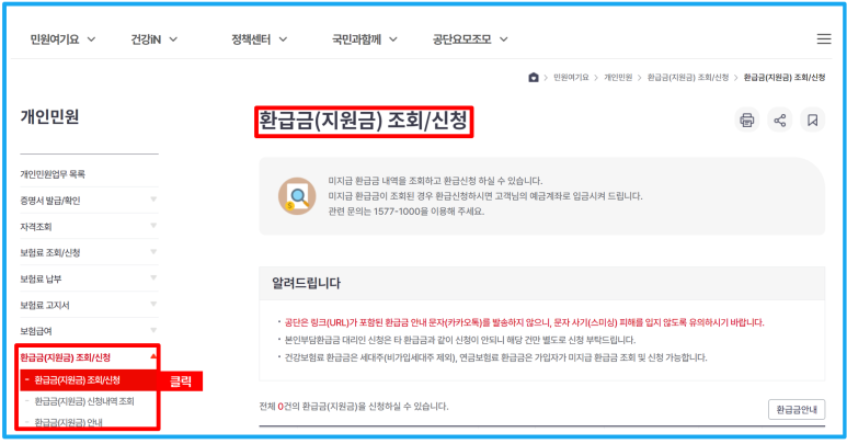 국민건강보험금 환급금 조회 및 신청은 '국민건강보험'홈페이지에서 확인할 수 있습니다.