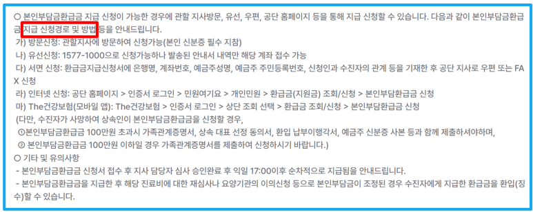 이 신청서에 진료받은 사람의 인적사항, 지급받을 계좌를 기재하여 환급을 신청할 수도 있다고 합니다.