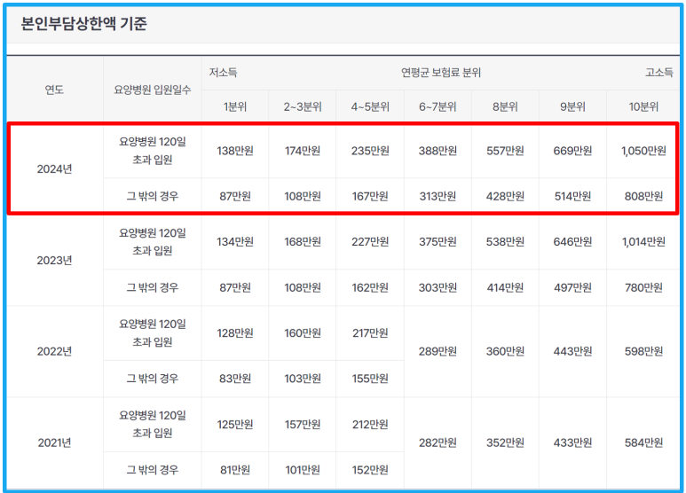 2024년의 본인부담상한액 기준을 살펴볼게요.