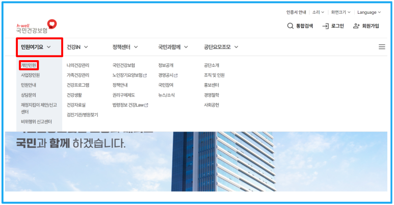 그 다음 메뉴에서 '민원여기요' - '개인민원'을 클릭해주세요.