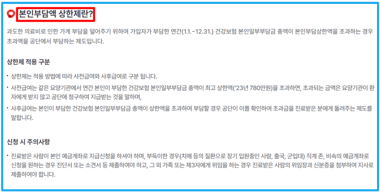 상한액(23년 기준 780만원)을 초과할경우, 요양기관이 환자가 아닌 공단에 청구하는 방식입니다.