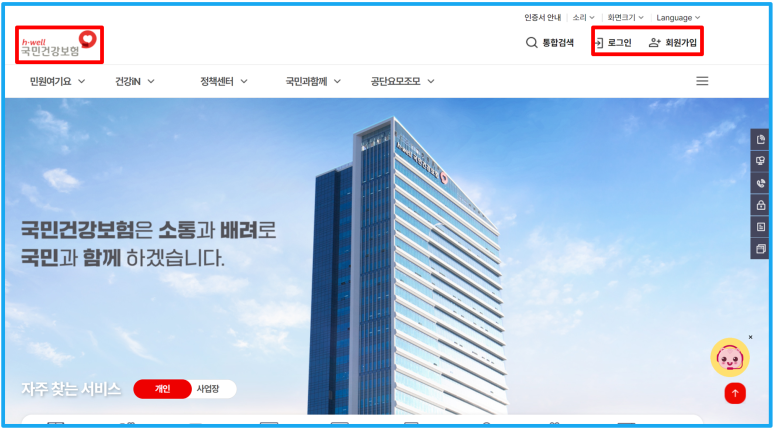 먼저 홈페이지에 접속하신 후 본인인증 및 로그인을 해주시면 됩니다.