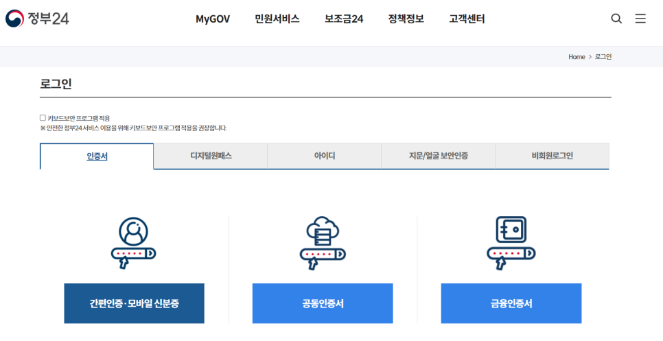 그외에 카카오, 네이버, 공동인증서, 삼성패스 등을 통해서