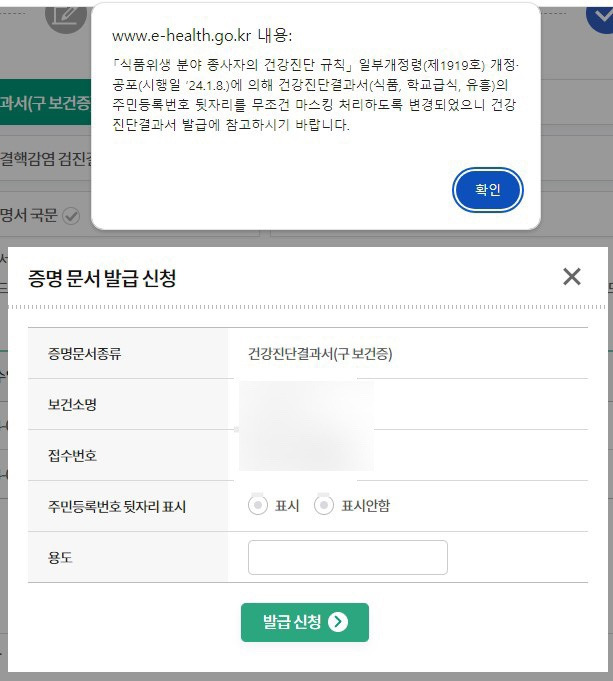 건강진단결과서(구 보건증) 신청시 유의사항은