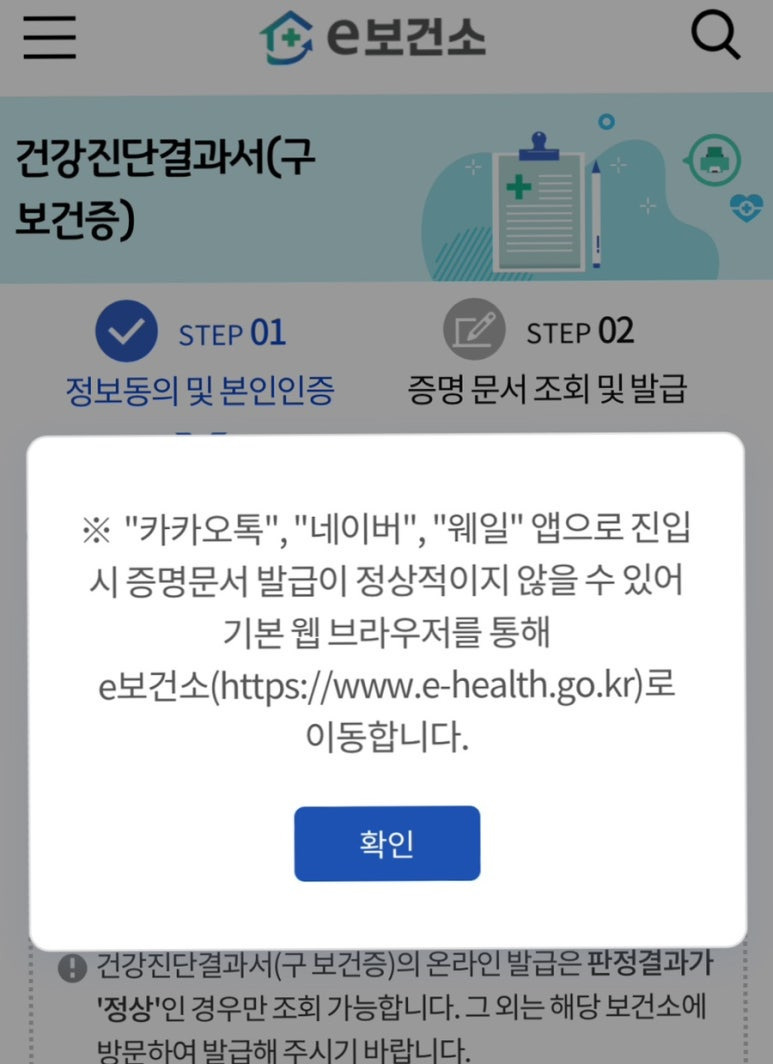 건강진단결과서(구 보건증) 검사결과가 뜬다.
