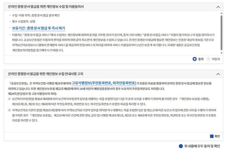 그 외는 보건소에 방문 후 발급.