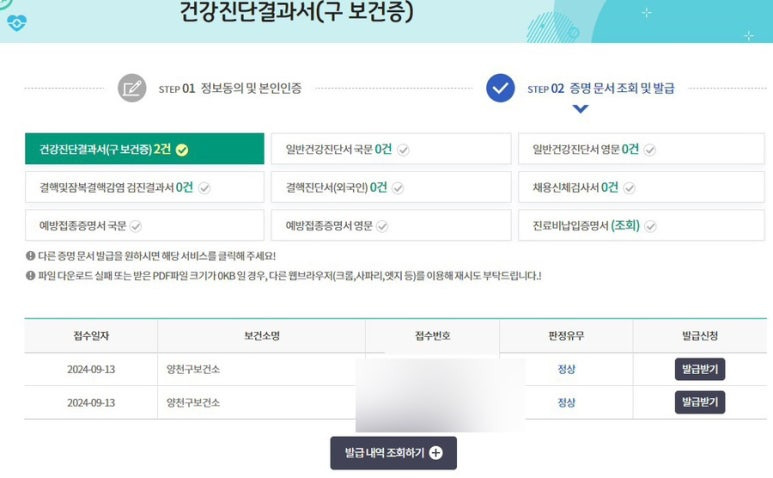 보건증 (건강진단결과서) 인터넷으로 발급 출력 가능합니다.