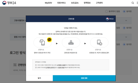 저는 카카오톡 간편인증으로 편하게 진행을 했구요.