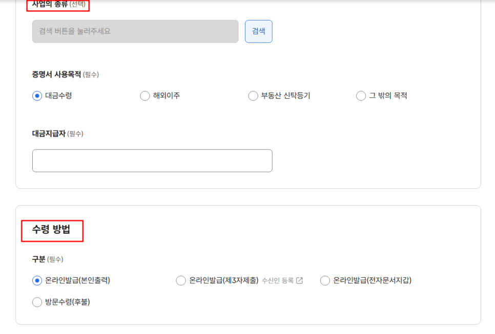 수령방법도 인쇄, 전자문서, 방문수령등이 있으니 편하신 방법으로 선택해주세요.